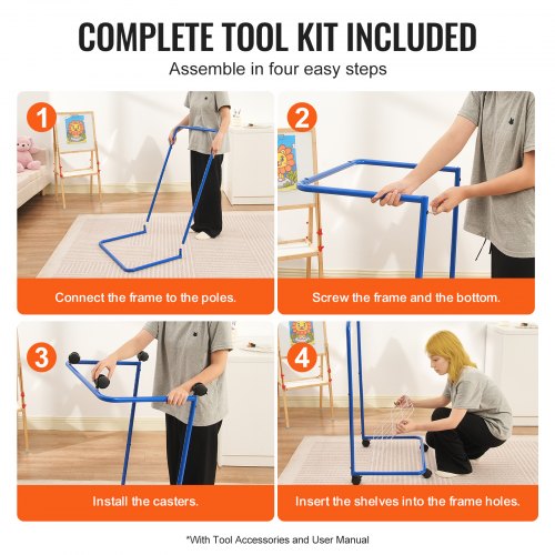 VEVOR Art Drying Rack, 25 Removable Shelves 17 x 13 x 39.4 inch Paint Drying Rack With Lockable Wheels, Carbon Steel Painting Drying Rack for Artwork in Classroom, Art Studios and Schools, Blue+White