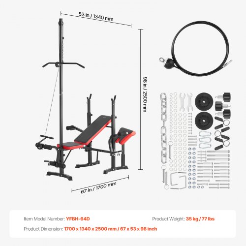 VEVOR 6-in-1 Weight Bench Set, 600lbs Adjustable Workout Bench Press, Exercise Sit up Bench for Home Gym Strength Training, Quick Folding Incline Decline Flat Bench