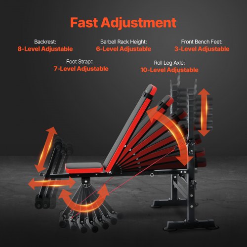 VEVOR Weight Bench, Multi-Functional Adjustable Weight Bench Press for Full Body Workout, 660lbs Exercise Sit up Bench for Home Gym Strength Training, Flat Bench with Quick Folding & Fast Adjustment
