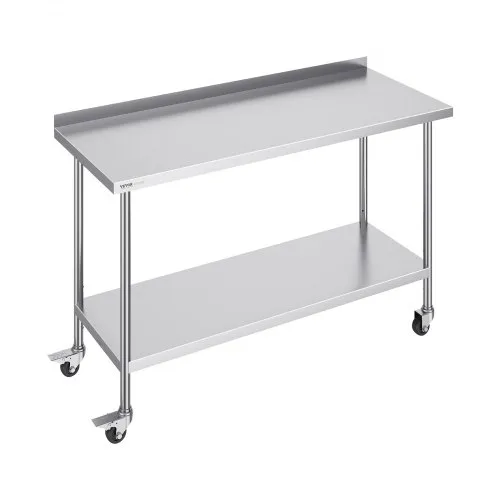 VEVOR 24 x 48 x 40 Inch Stainless Steel Work Table, Commercial Food Prep Worktable with Casters, Heavy Duty Prep Worktable, Metal Work Table with Adjustable Height for Restaurant, Home and Hotel