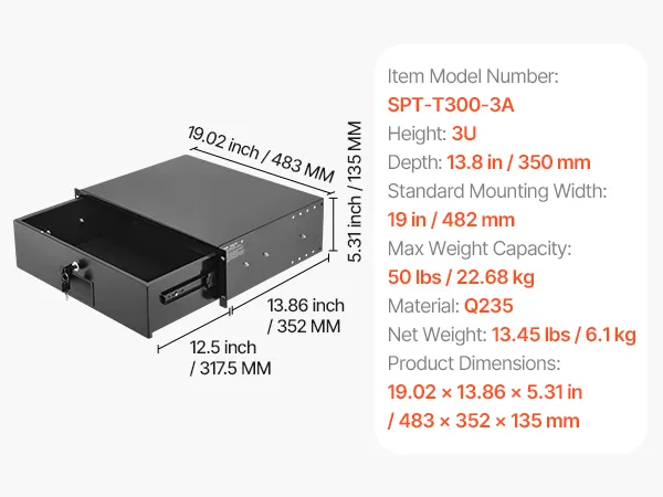 This rack mount drawer provides a sturdy structure, supporting up to 50 lbs/22.68 kg.