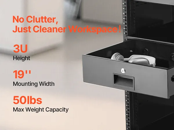 3U Rack Drawer: Fit for 19-inch server racks & network cabinets. This rack mount drawer gives you plenty of room to store your gear. Smooth sliding design allows easy access to your equipment