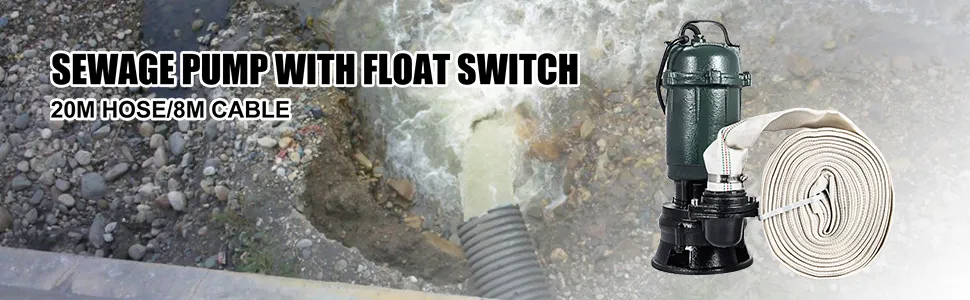The submersible sewage pump includes a 65.6 ft/20 m hose with the "0" sealing ring that is perfect for everyday water draining or other emergency draining.