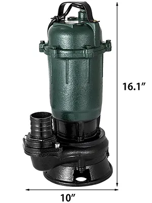 Submersible sewage pump features large outlets, high-quality impeller, and higher base that are suitable for sewage of large debris, not easy to block, and run more smoothly with lower noise and loss. Copper motor with thermal protection can prevent overheating for longer life.