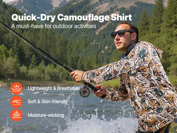 This quick-dry camo hoodie keeps things cool, light, and breathable. Whether hiking or on a mission, it helps you stay fresh and dry during every outdoor adventure.
