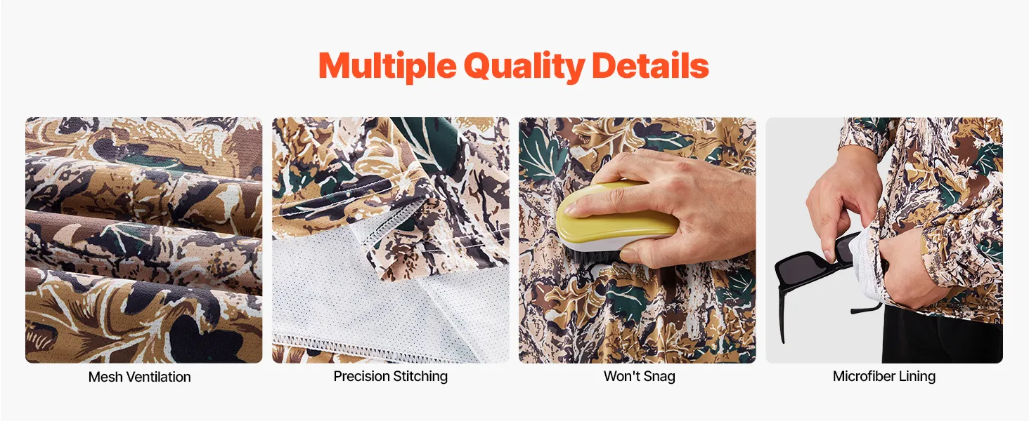 Premium Fabric Blend: This camo hoodie features a blend of 91.1% polyester and 8.9% spandex—lightweight, breathable, and stretchy. It keeps you cool and dry while handling all kinds of outdoor adventures with ease