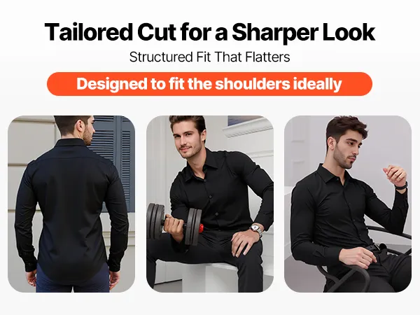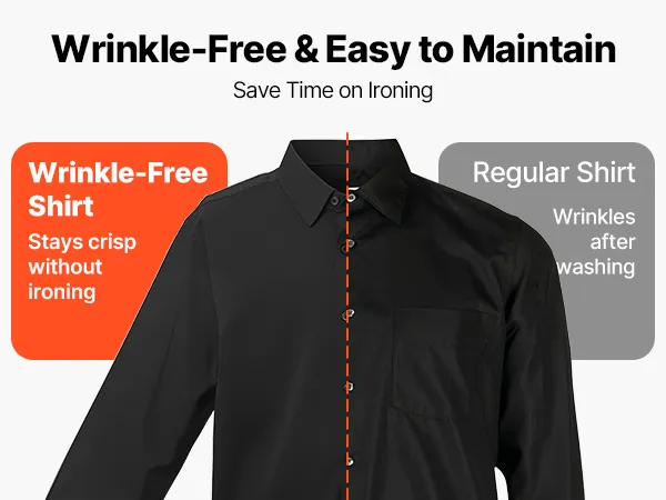 VEVOR Men's Button Up Shirt, Mens Long Sleeve Wrinkle-free Button Down Dress Shirts, Slim Fit Soft Stretch Fabric for Business Casual or Formal, Work, Wedding, Dinner, Black