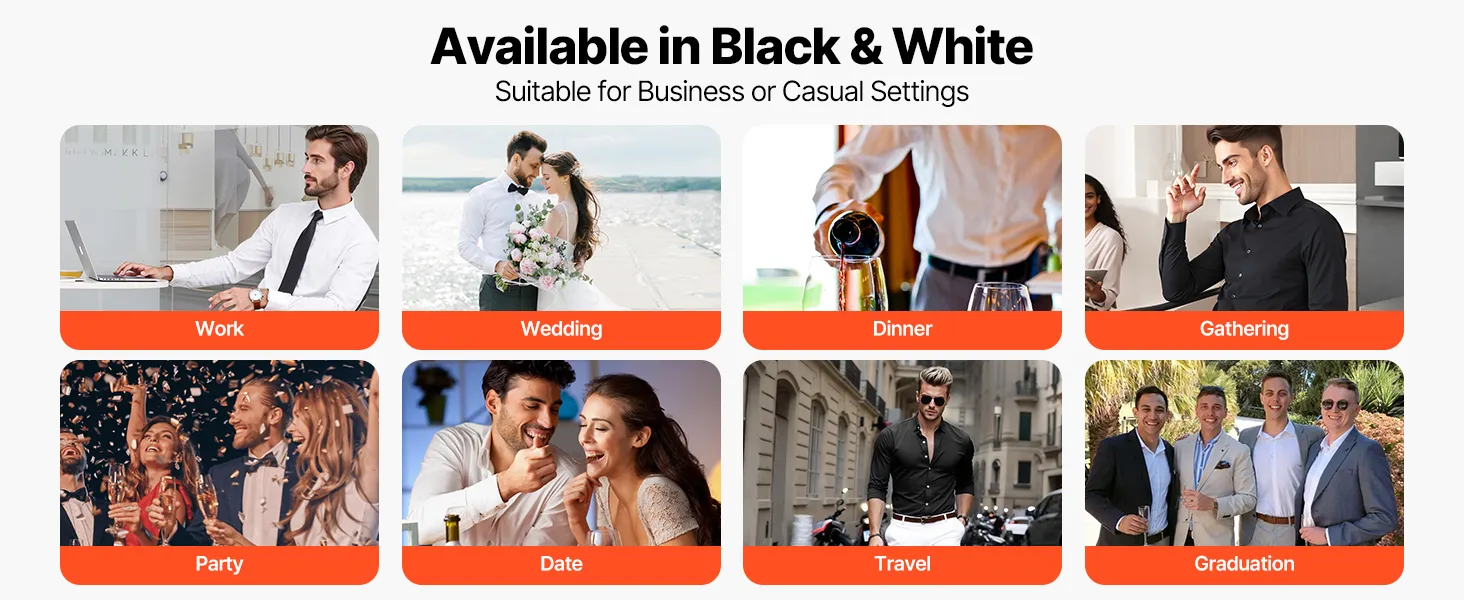 Versatile for All Occasions: Available in black and white with M, L, and XL sizes, this mens button up shirts long sleeve style suits work, weddings, casual outings, or formal dinners—your go-to shirt for any setting