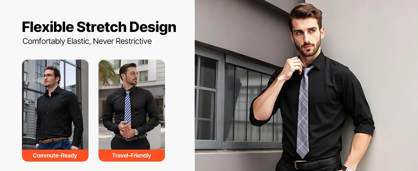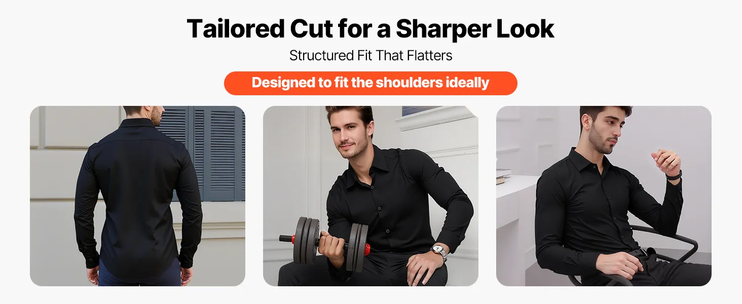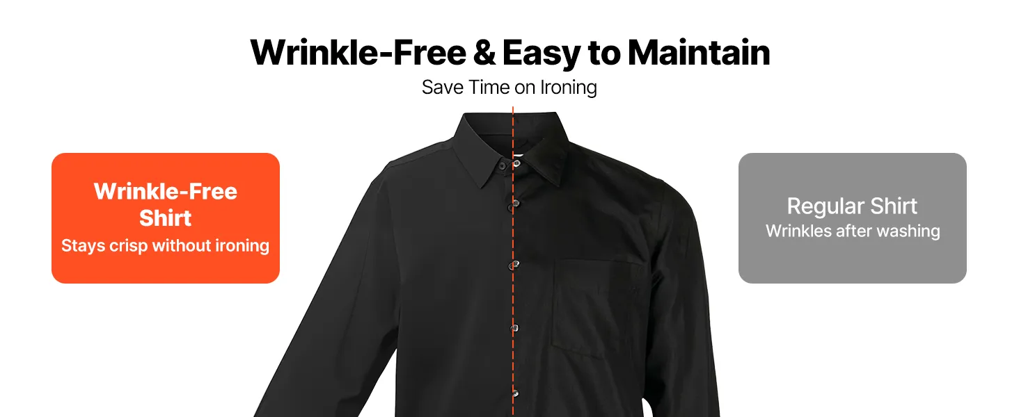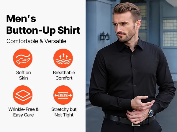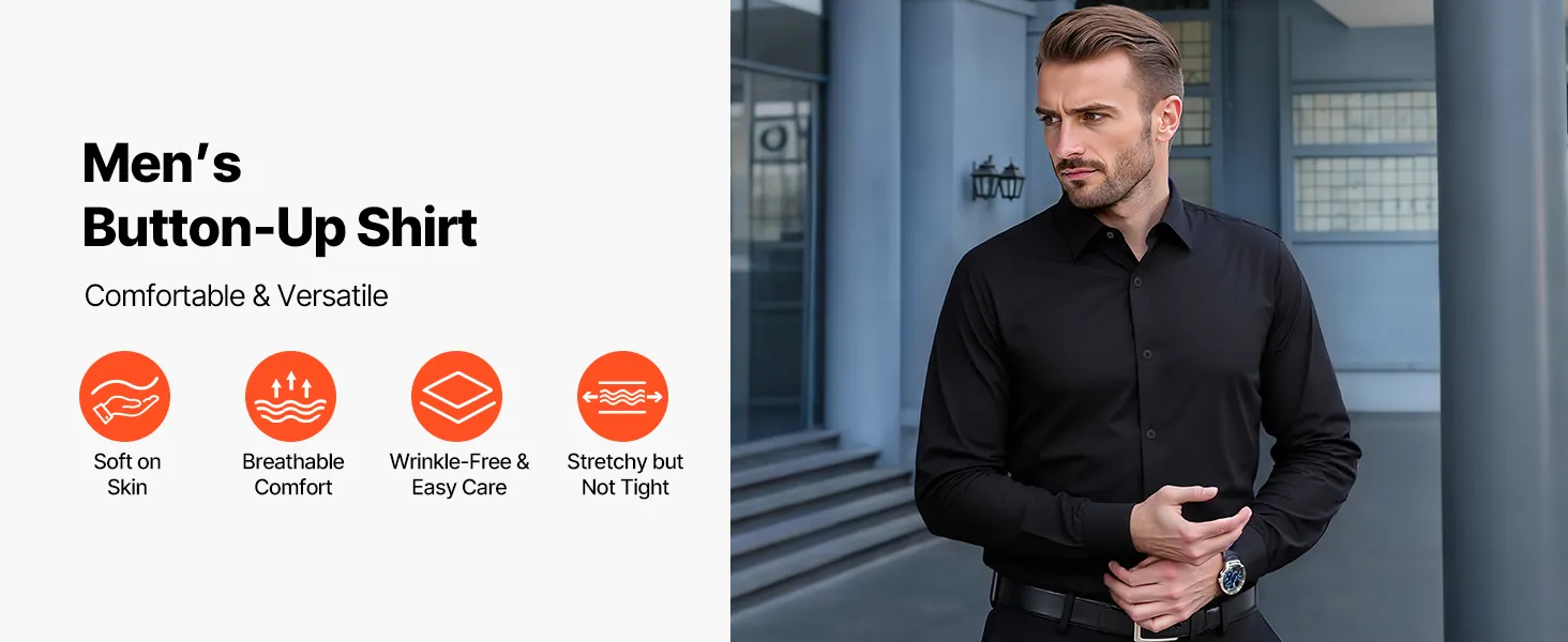 VEVOR Men's Button Up Shirt, Mens Long Sleeve Wrinkle-free Button Down Dress Shirts, Slim Fit Soft Stretch Fabric for Business Casual or Formal, Work, Wedding, Dinner, Black VEVOR Men's Button Up Shirt, Mens Long Sleeve Wrinkle-free Button Down Dress Shirts, Slim Fit Soft Stretch Fabric for Business Casual or Formal, Work, Wedding, Dinner, Black