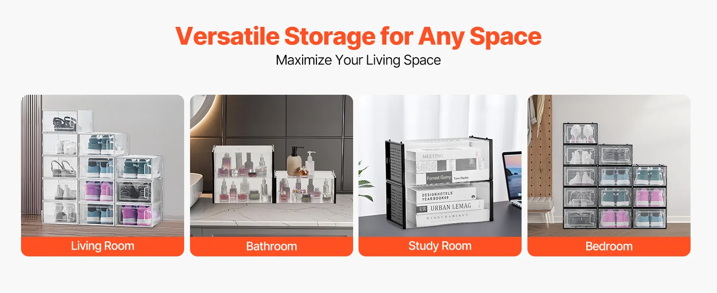Breathable Ventilation: Rear ventilation holes of the shoe organizer boxes keep air circulating, ensuring a dry environment inside the box. This design avoids smell buildup, keeping your shoes fresh