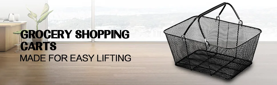 These VEVOR shopping baskets are made of strong metal. They can hold up to 44 pounds of items. The metal material ensures they won't easily deform. The black metal design adds a sleek look. These black metal shopping baskets are great for holding various things. These baskets can hold various items, including fruits, vegetables, and groceries. They meet your daily shopping needs. Its durable construction guarantees long-term use. They are perfect for busy supermarkets and retail stores. The strong build ensures that they last longer in heavy use.