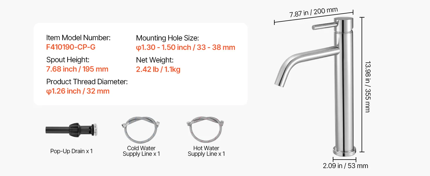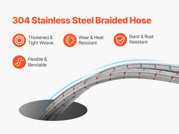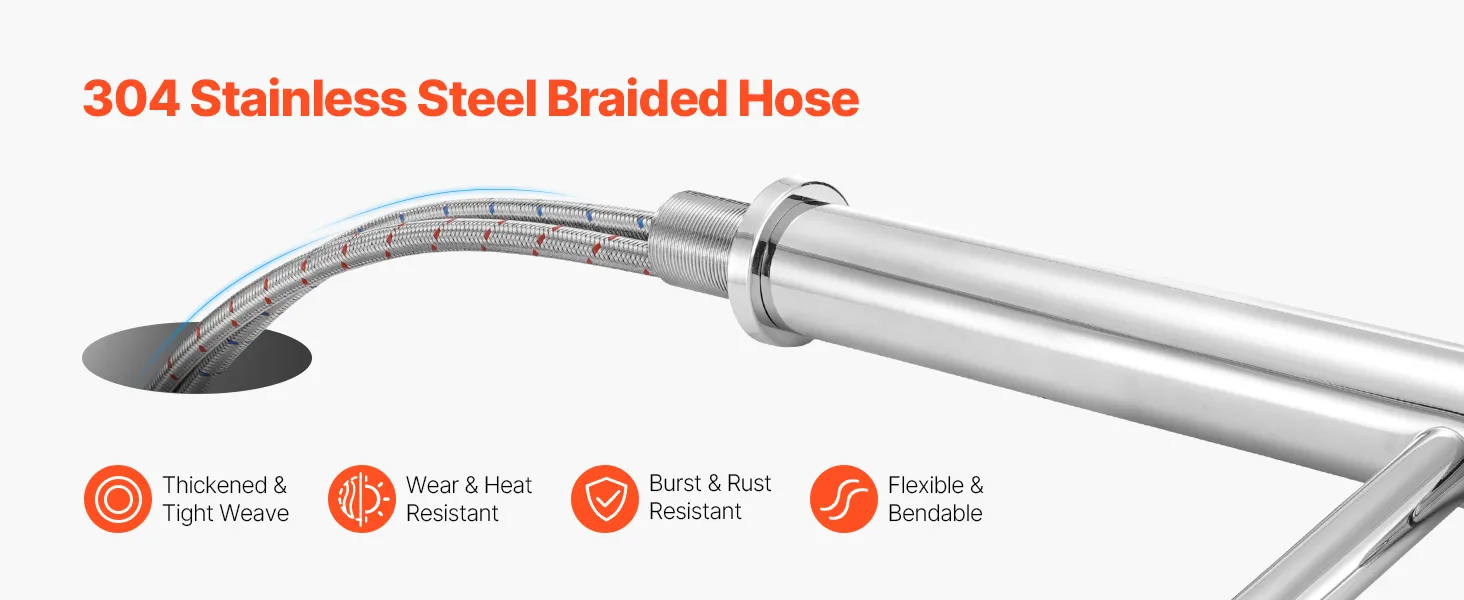 Featuring a high-quality 304 stainless steel braided hose, this bathroom kitchen faucet provides exceptional durability and resistance to wear, rust, and bursting. Its flexible design ensures ease of use while offering long-lasting, reliable performance in your kitchen or bathroom.