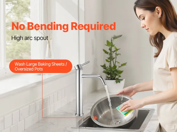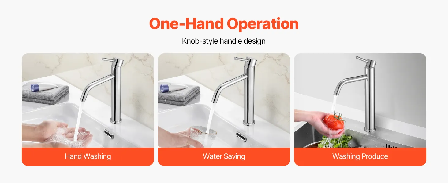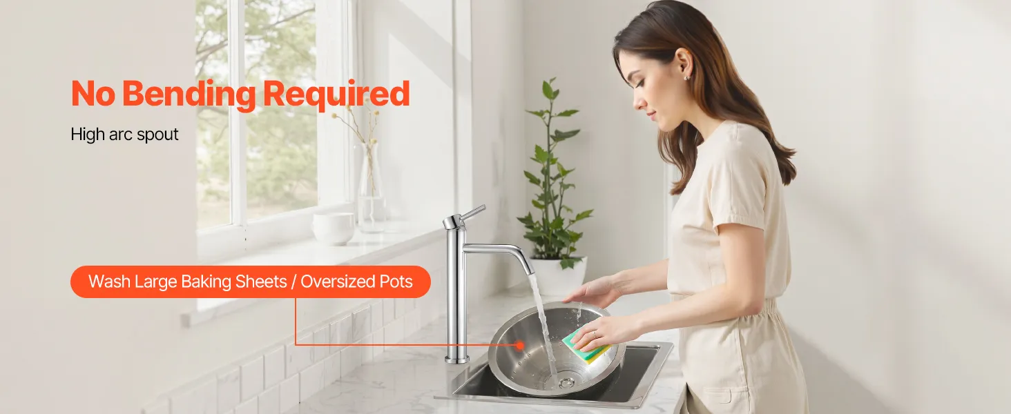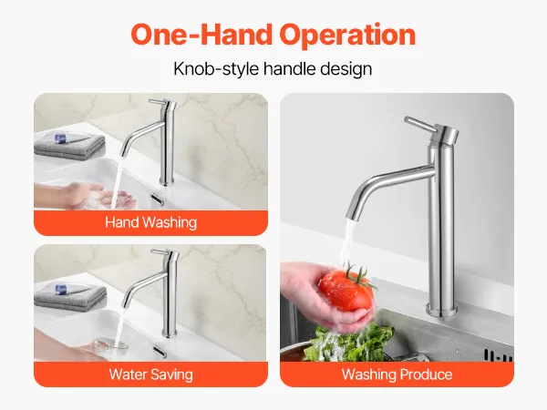 Temperature & Flow Control: This VEVOR kitchen water faucet features a knob-style handle, allowing you to smoothly adjust both water temperature and flow with one hand. Even when holding a baby or carrying items, you can easily control the faucet, providing a convenient and hassle-free experience