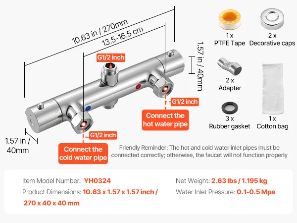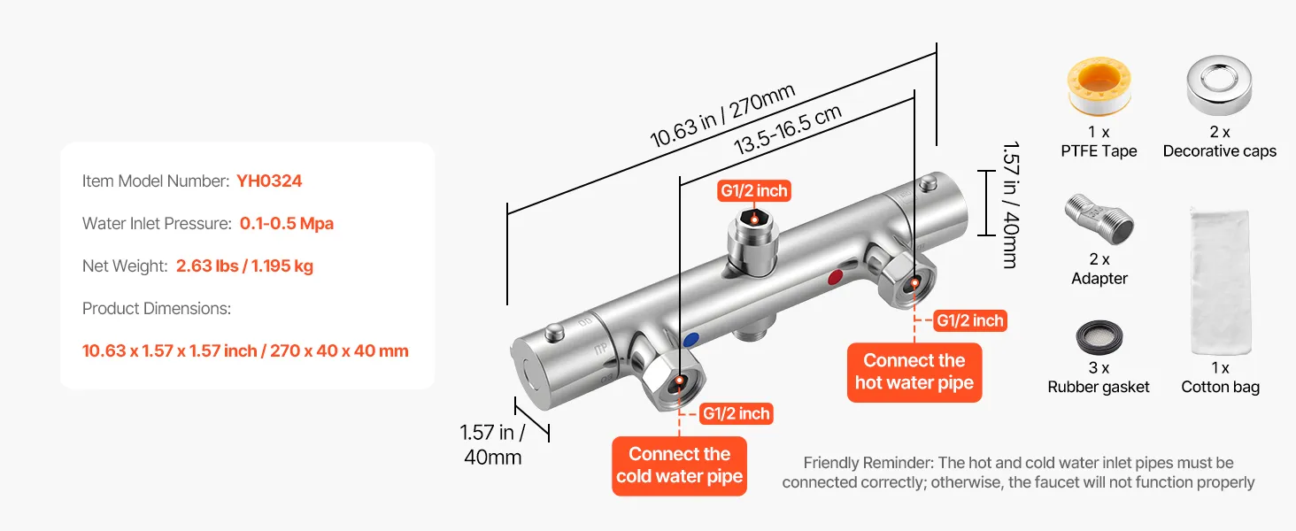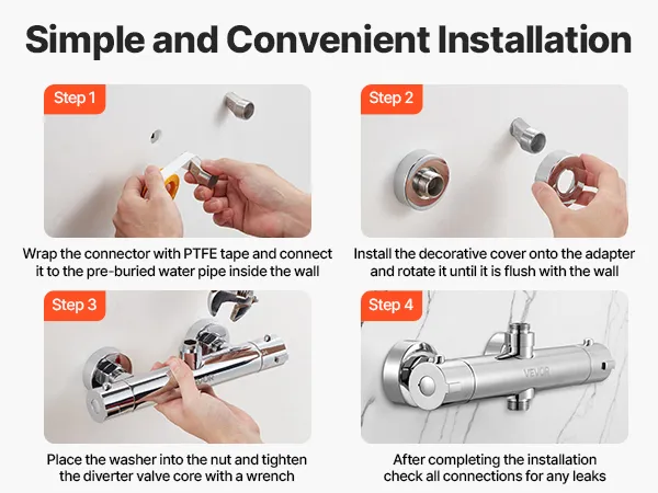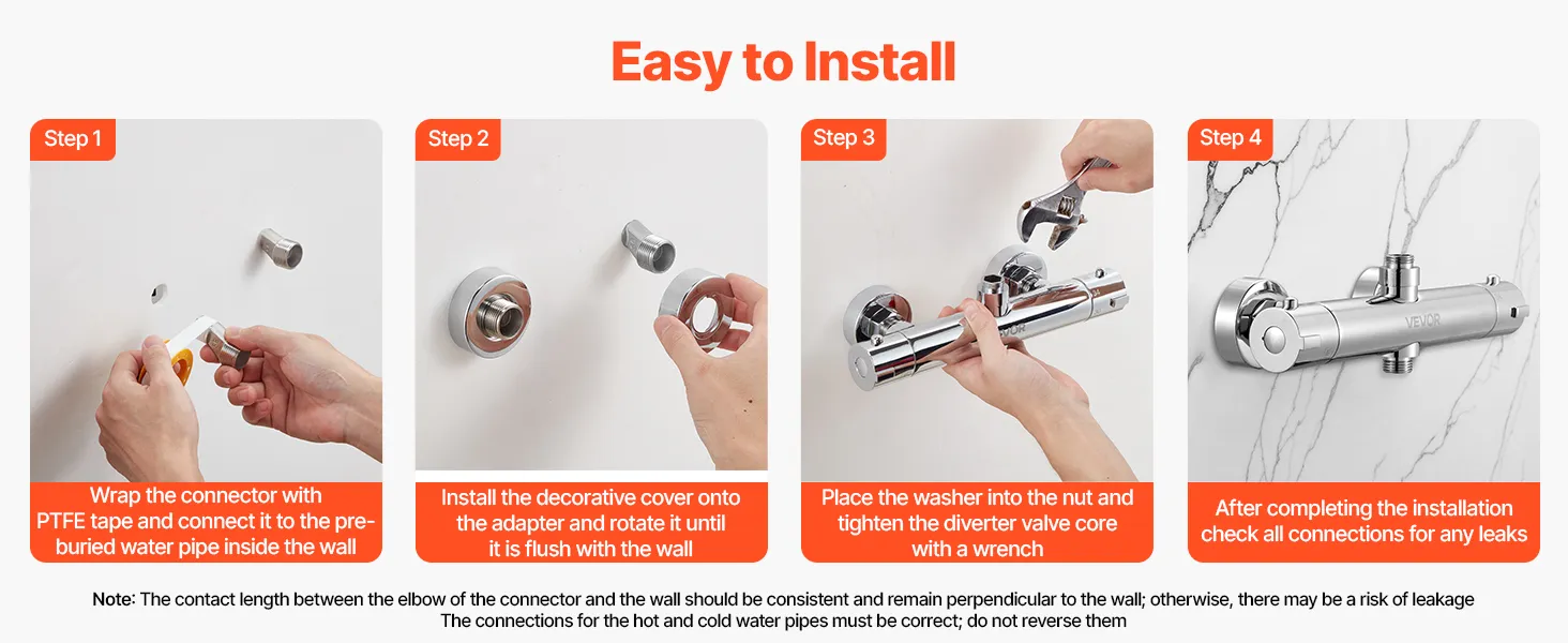 Leak-Proof Setup: Our thermostatic rv shower faucet comes with plumber's tape to wrap the adapter and improve sealing. The G1/2 inch inlet fits standard pipes. Red and blue stickers guide you to connect hot and cold lines correctly without mistakes