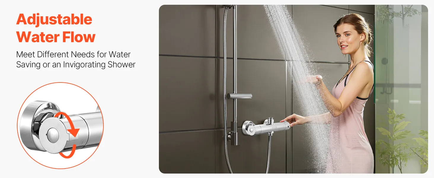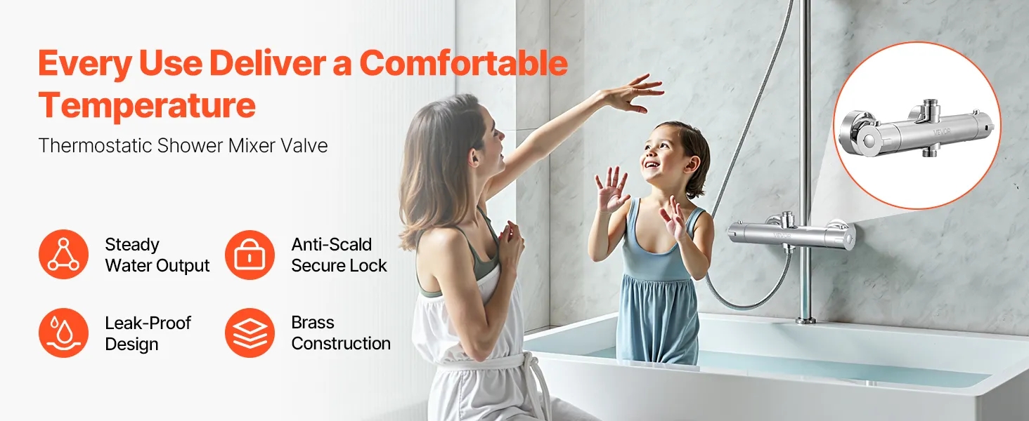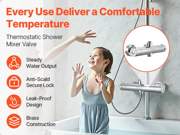This VEVOR thermostatic mixing valve combines dual knob control for precise water temperature and flow adjustments. From mild rinses to strong showers, enjoy steady, reliable water output that suits everyone in your home. Make every shower effortless and enjoyable.