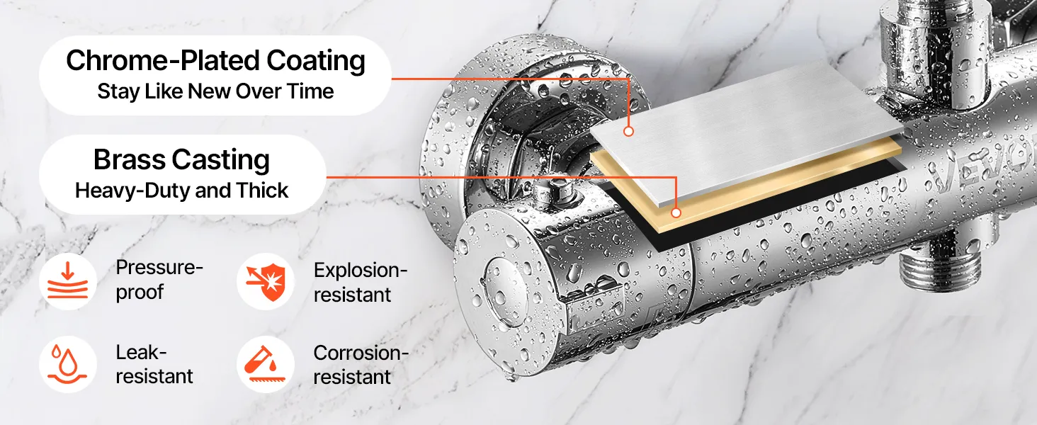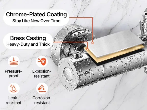 Crafted with a solid brass valve, this bathroom thermostatic shower mixer handles high water pressure, leaks, and cracks with ease. A corrosion-protective coating keeps the surface looking fresh for long-lasting use. Built to deliver steady, reliable water flow every time you shower.