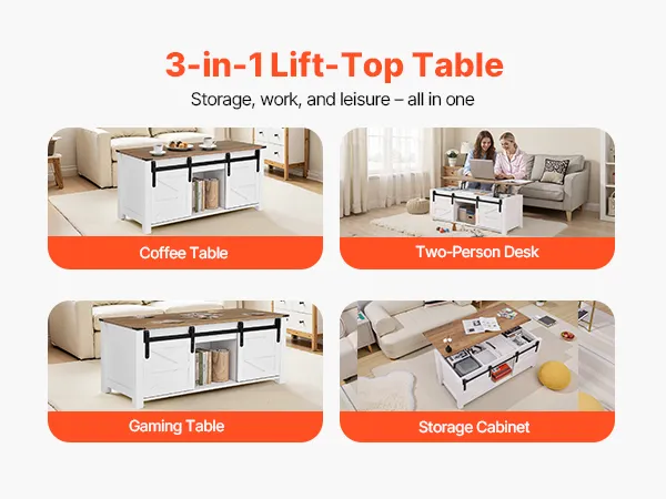 Use it as a traditional coffee table and storage cabinet by your sofa for casual lounging. When needed, simply lift the tabletop to convert it into a functional home office desk—ideal for occasional work sessions without needing a separate workspace.