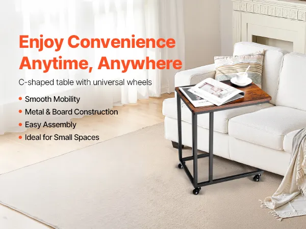 Our c-shaped end table features a sturdy iron frame that stays steady and reliable over time. The thick particleboard top is durable and easy to clean. Four swivel casters make moving simple, while rounded edges help prevent bumps. Perfect for any space or daily use.