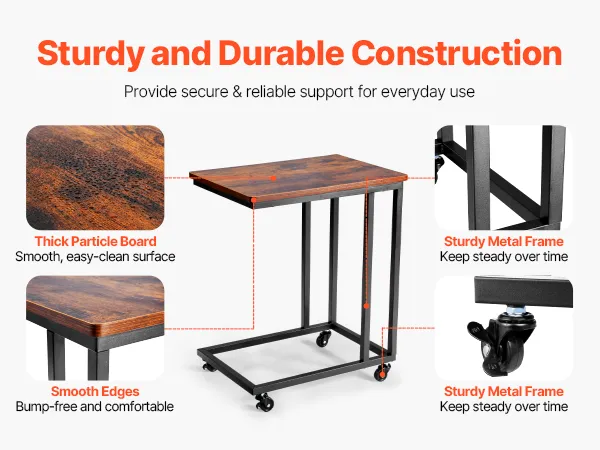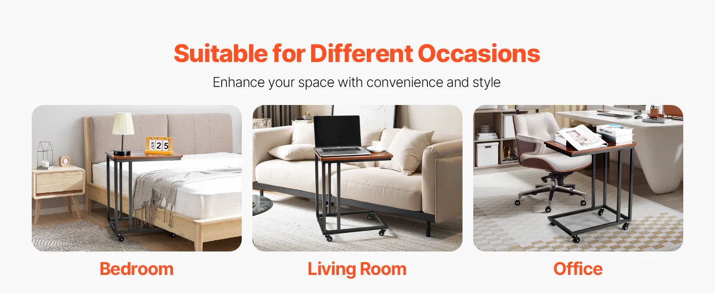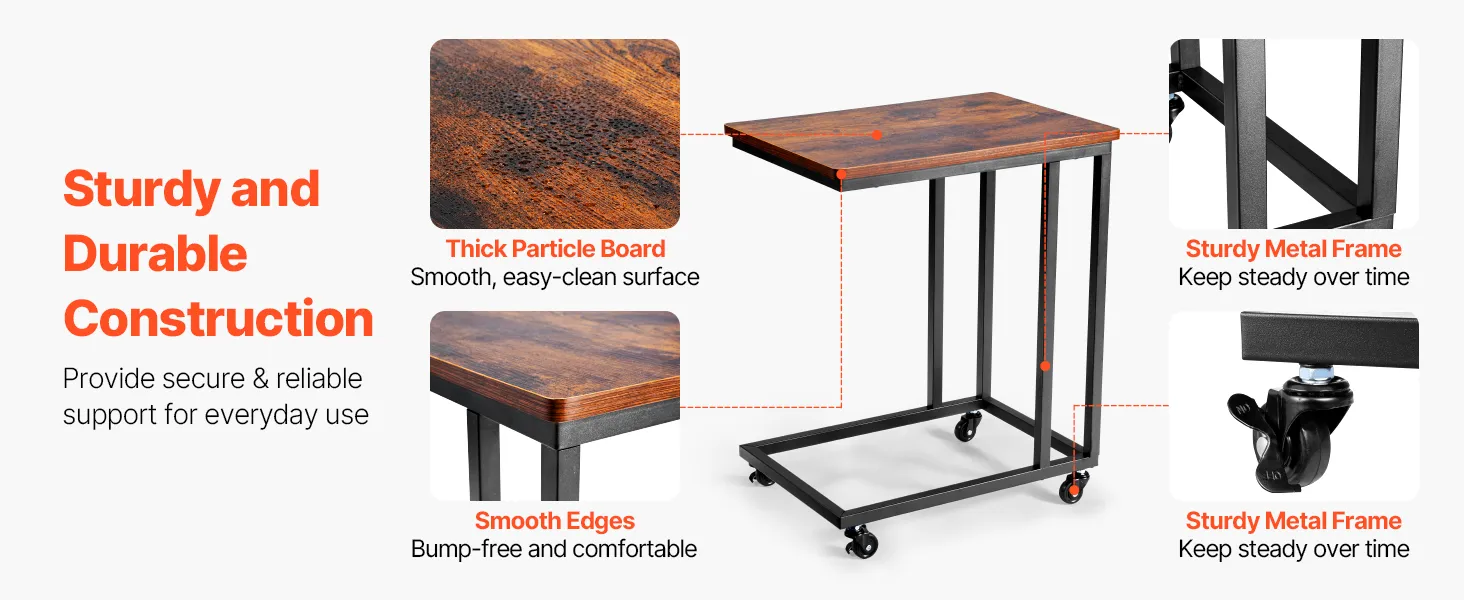 VEVOR sofa side laptop desk suits any setting with its sleek, minimalist style. Perfect as a bedside table for books and water, a living room side table for snacks and remotes, or an office stand for laptops and paperwork. Bring style and function to your space.
