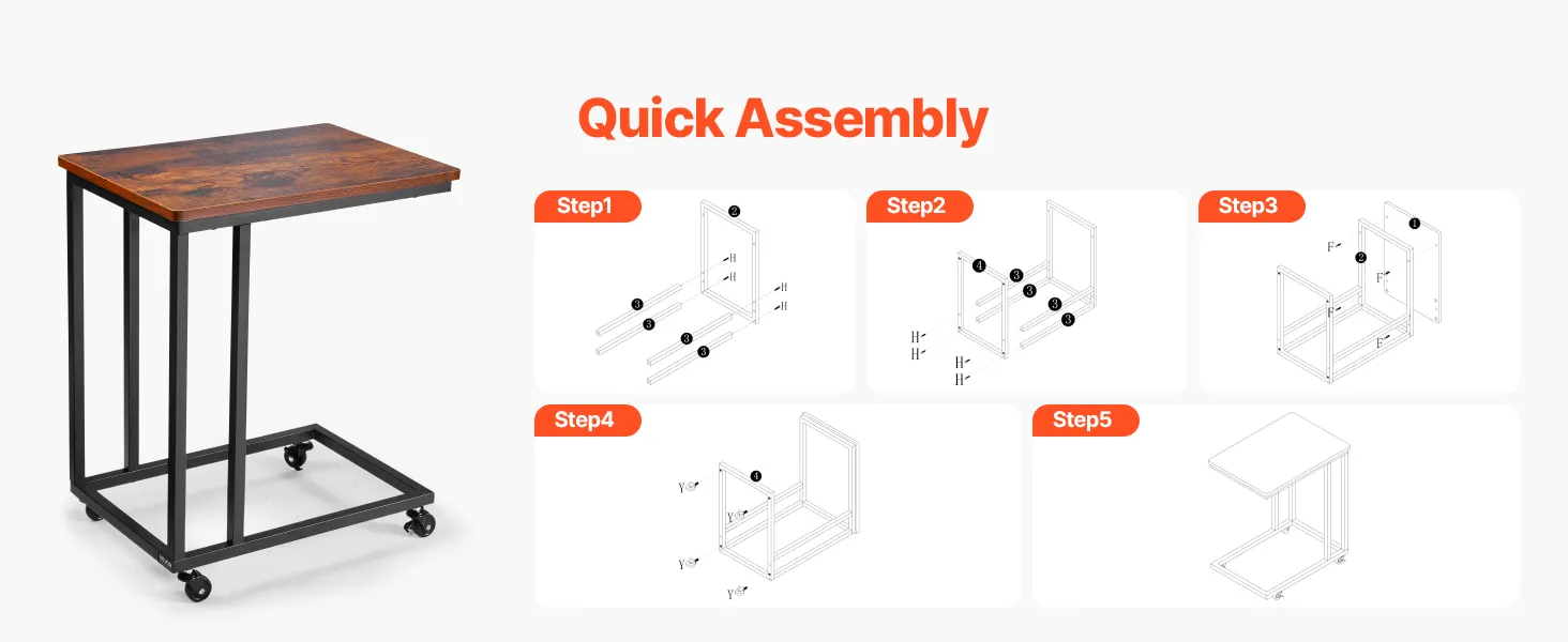 Easy Assembly: This c table is designed for quick, hassle-free assembly. With carefully crafted components, the setup is smooth and simple. Whether you're a DIY beginner or a busy professional, you can quickly assemble and enjoy the convenience of this stylish table