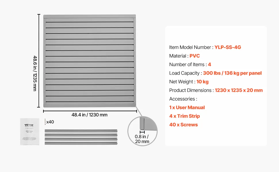 VEVOR Slat Wall Paneling, 4 x 4 ft, PVC Garage Slatwall with Modular Design, Grey Slat Wall Easy-to-Install Adjustable Slatwall Panel with Coupling Structure & DIY Cutting, Fits for Storage & Display VEVOR Slat Wall Paneling, 4 x 4 ft, PVC Garage Slatwall with Modular Design, Grey Slat Wall Easy-to-Install Adjustable Slatwall Panel with Coupling Structure & DIY Cutting, Fits for Storage & Display