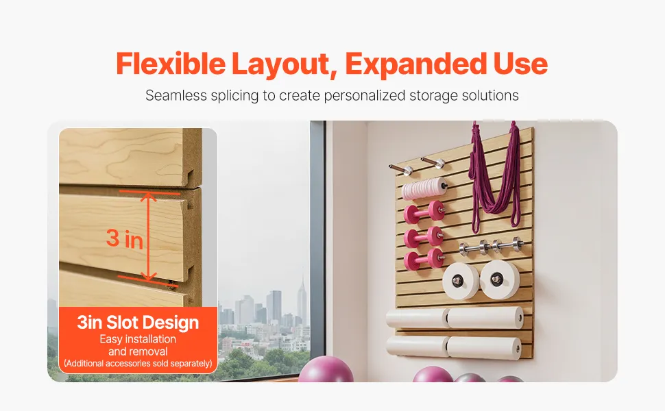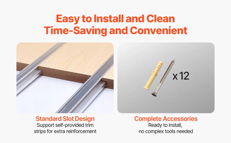 The standard slot design on the slat wall panel allows for easy installation of reinforcing strips for added stability. With simple installation and complete accessories, you can quickly set it up yourself.
