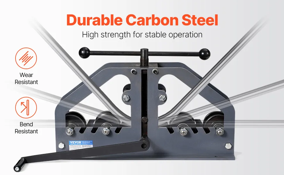 This tubing roll bender works seamlessly with steel, iron, copper, and aluminum, making it perfect for applications in air conditioning repair, metal processing, construction, metal furniture production, and pipe maintenance.