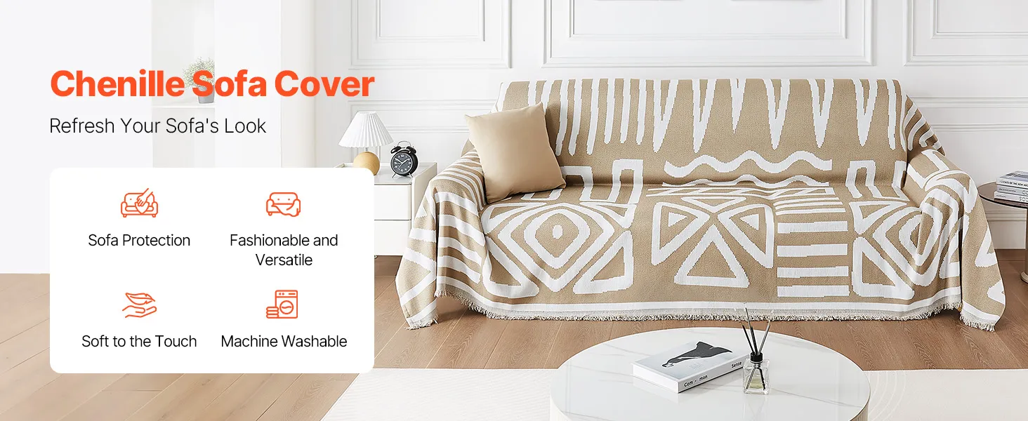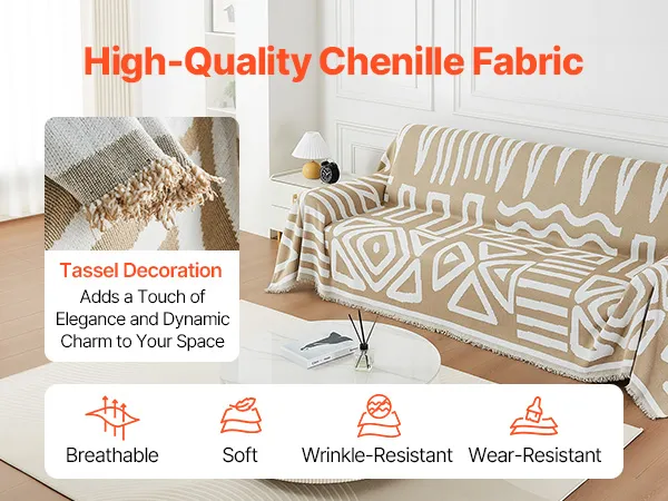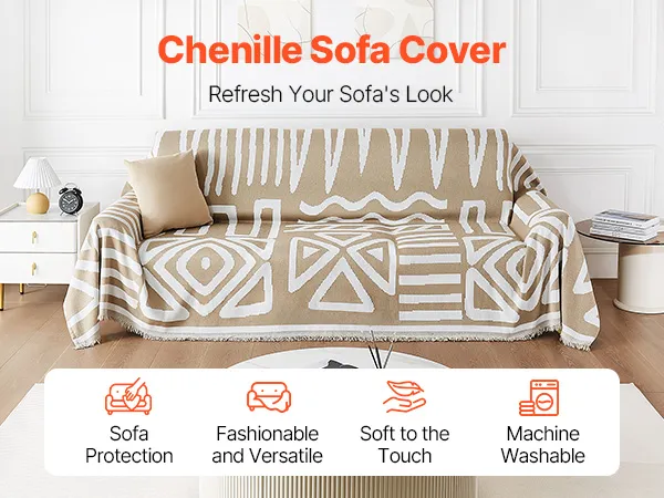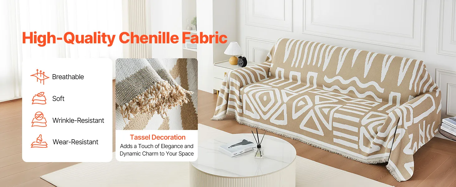 Made of premium chenille fabric, our cover is soft, breathable, and skin-friendly. It keeps sofa from pet scratches, spills, and daily wear. The elegant tassel enhances your home style. With its integrated throw design, it also functions as a bedspread, rug, tablecloth, office blanket, or bedsheet.