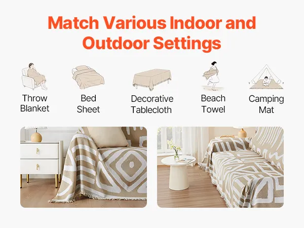 Versatile Use: This khaki couch cover can be used on chairs, sofas, or beds as a bedspread, throw blanket, bedsheet, shawl, or decorative tablecloth. It's also suitable for use in outdoor backyards, camping, or at the beach as a beach towel or picnic travel blanket, and ideal as a present for weddings, birthdays, Mother's Day, Father's Day, Christmas, Halloween, or New Year