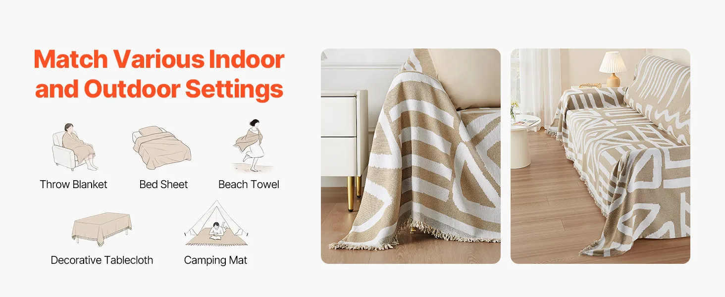 This versatile couch cover throw serves many purposes. It can be used as a cozy blanket on chilly nights, a stylish accent during social gatherings, or even a temporary picnic blanket for outdoor camping.