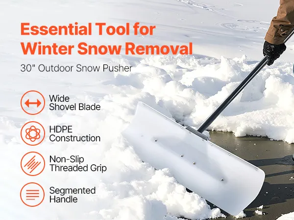 VEVOR Snow Pusher Shovel, 30 in Outdoor Snowplow Shovel with Ergonomic Grip, HDPE Plastic Blade, Winter Shovels with Segmented Handle, Metal Edged Strip, Portable Snow Removal Tool for Driveway Garden VEVOR Snow Pusher Shovel, 30 in Outdoor Snowplow Shovel with Ergonomic Grip, HDPE Plastic Blade, Winter Shovels with Segmented Handle, Metal Edged Strip, Portable Snow Removal Tool for Driveway Garden