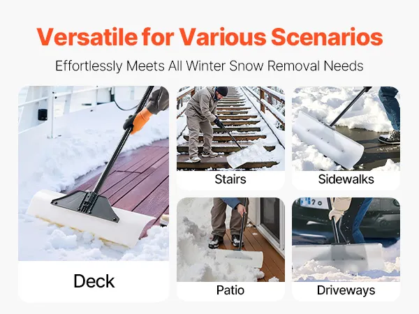 • Versatile Use: The snow pusher shovel is suitable for clearing snow from yards, stairs, decks, and driveways. Its powerful clearing ability ensures secure and convenient travel during the winter months