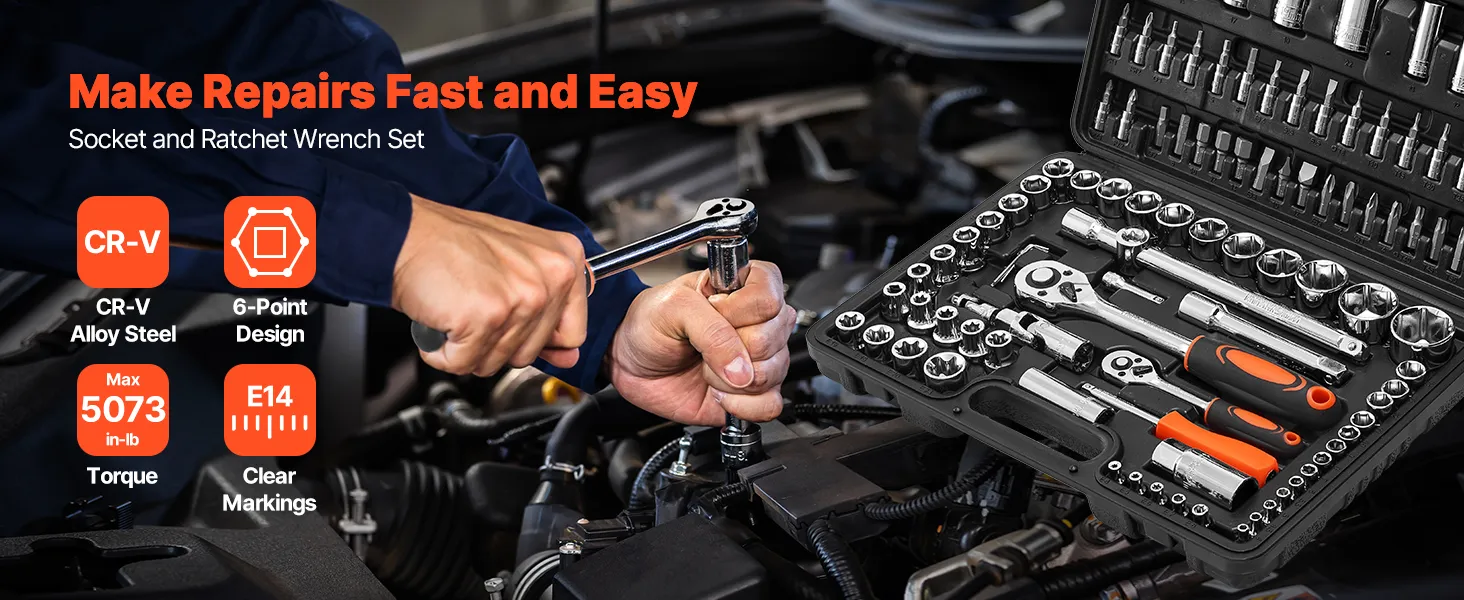 Versatile Applications: This mechanic tool set is highly versatile, ideal for automotive repair, bike assembly, plumbing, woodworking, and DIY projects, easily handling daily maintenance, home tasks, and professional jobs