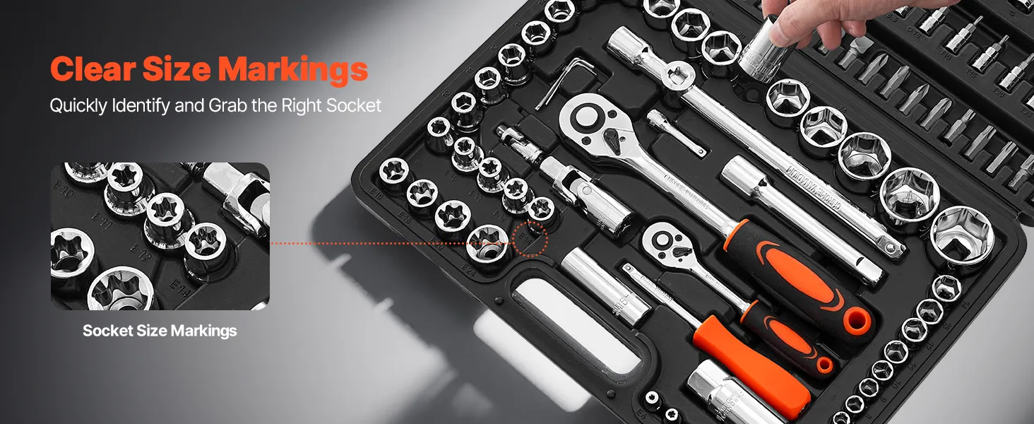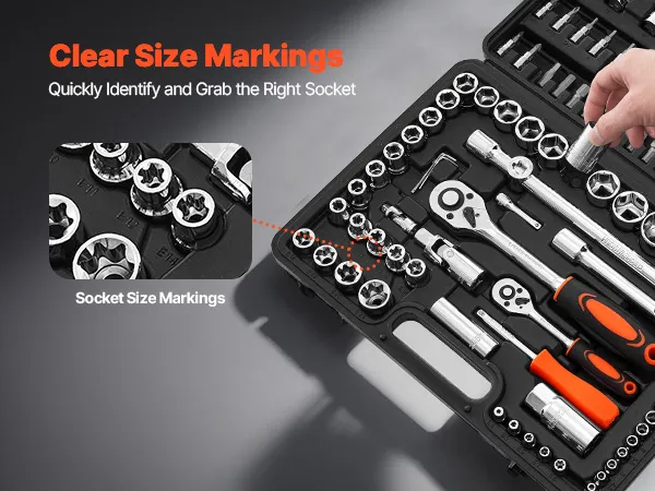 Each socket features engraved, easy-to-read size markings that are highly wear-resistant. This socket tool set ensures quick identification and faster access to the right tool when you need it.