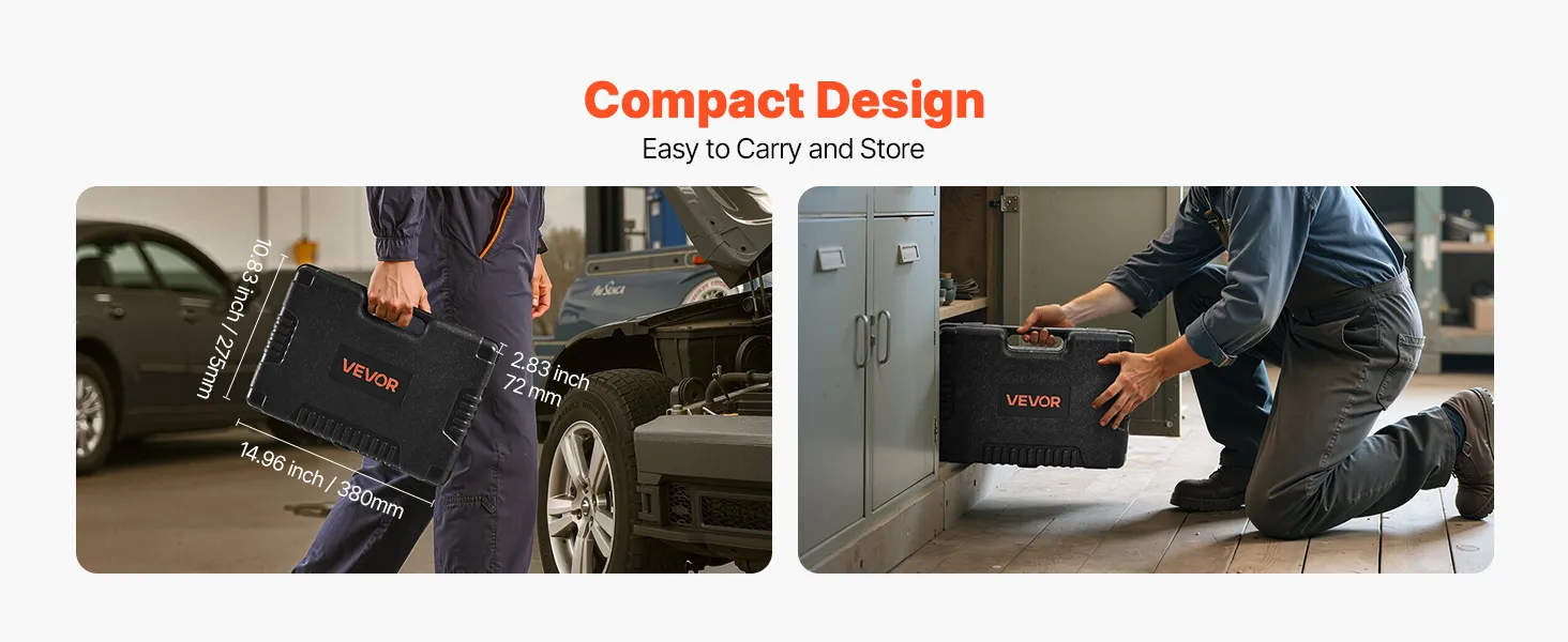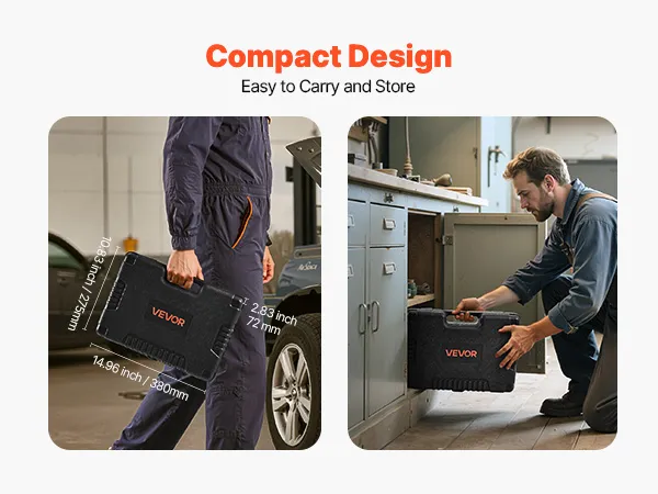 Designed for portability, the case of the metric socket set measures 14.96 x 10.83 x 2.83 inch / 380 x 275 x 72 mm. Its compact size fits easily into tight spaces or can be carried on the go, ensuring efficient work anywhere.