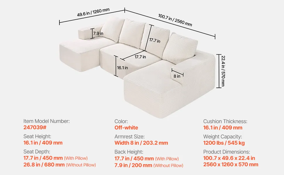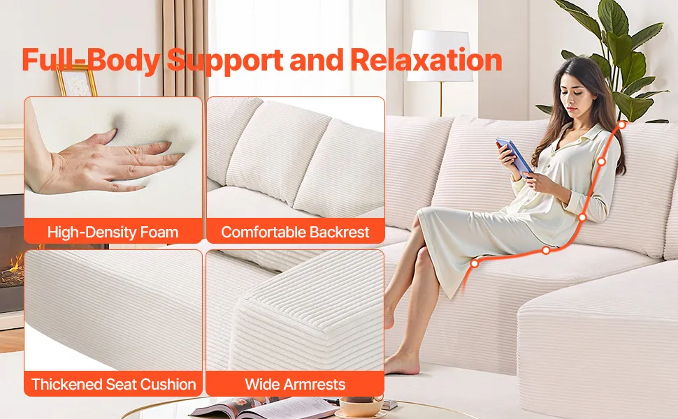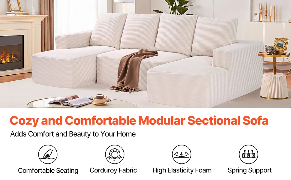 Designed to fit your home and style, this versatile modular sectional sofa offers comfort and a modern look. Made with high-elastic foam and spring support, it’s both durable and comfy. The breathable, easy-to-care-for corduroy fabric keeps your living space stylish and low-maintenance.
