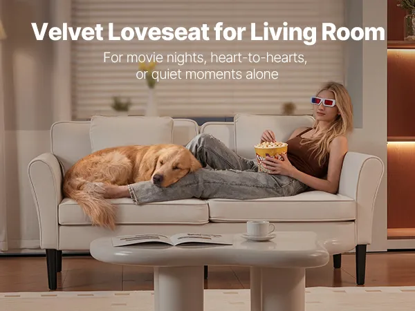 Velvet Loveseat Sofa: Crafted with high-density velvet, this sofa is silky-soft and skin-friendly, ideal for relaxation. The durable, fade-resistant fabric handles daily use, avoids pilling, and is easy to clean from pet hair or light stains