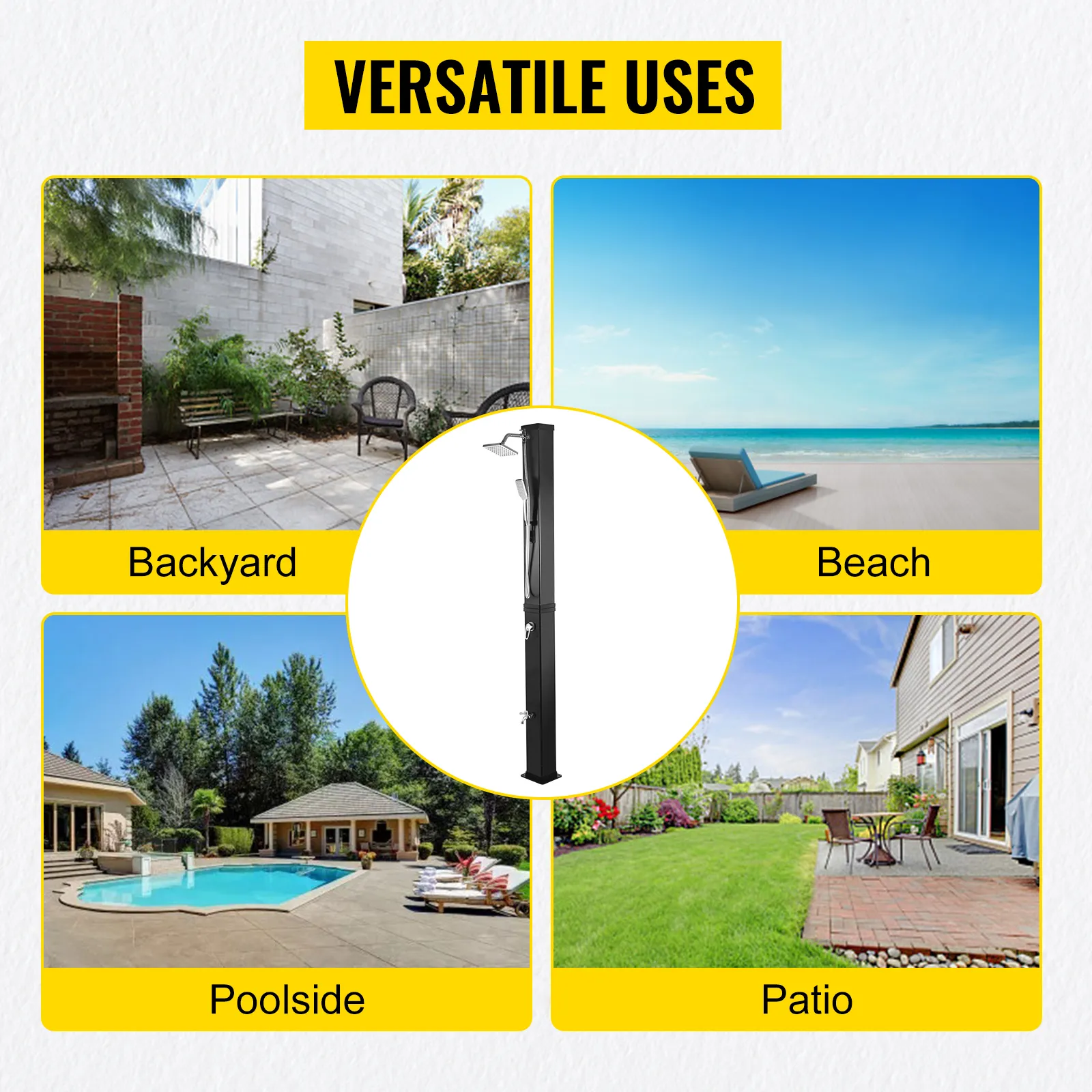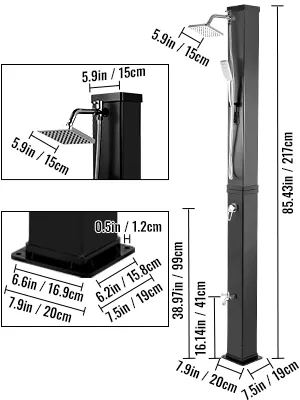 The solar outdoor shower is a convenient shower for outdoor use. Perfectly suitable for garden, backyard, beach, poolside spa, outdoor pool, etc.
