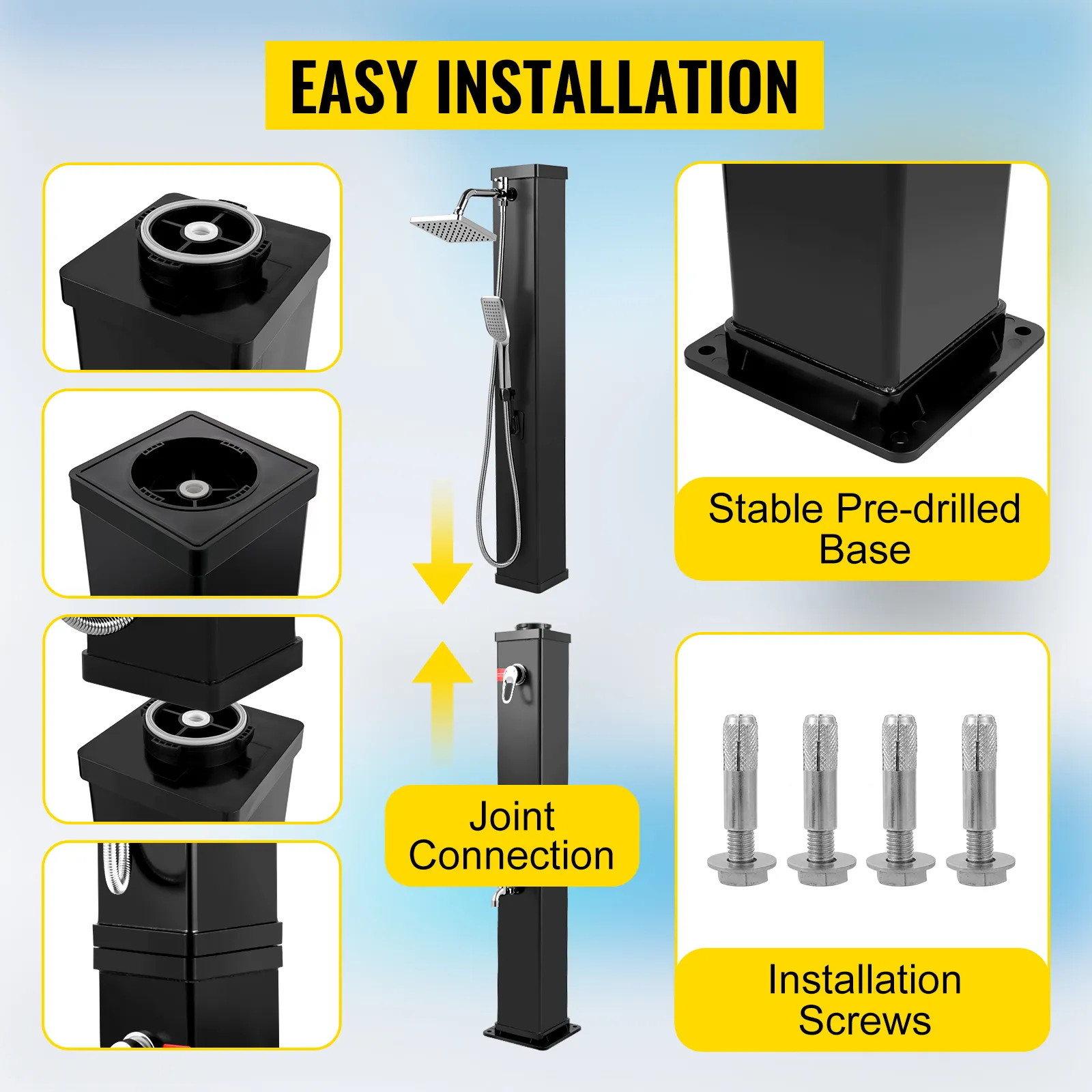 This pool shower will come with 2-section columns. All hardware is packed in the parcel for your easy installation. Kindly recommended: Please mount the shower column on cement or other solid surfaces to make it more stable.
