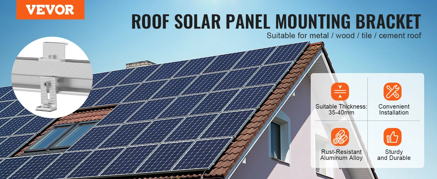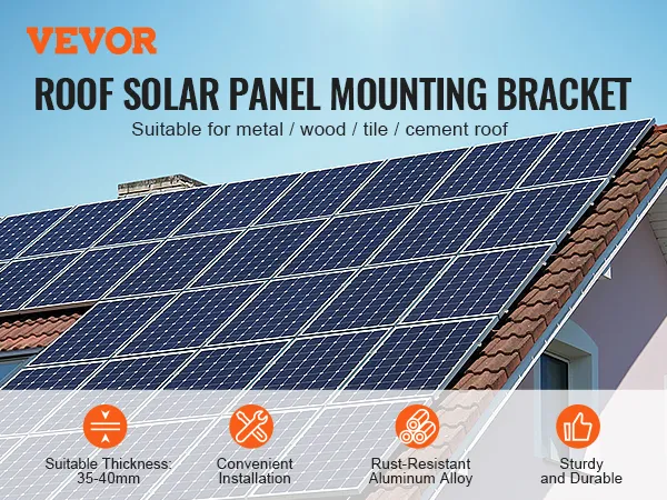 Choose VEVOR solar panel mounting bracket for reliable and stable mounting. 35 to 40 mm adjustable end clamp accommodates different solar panel thicknesses, and the anodized aluminum alloy construction provides long-lasting stability, making it the ideal choice for solar panel installation.