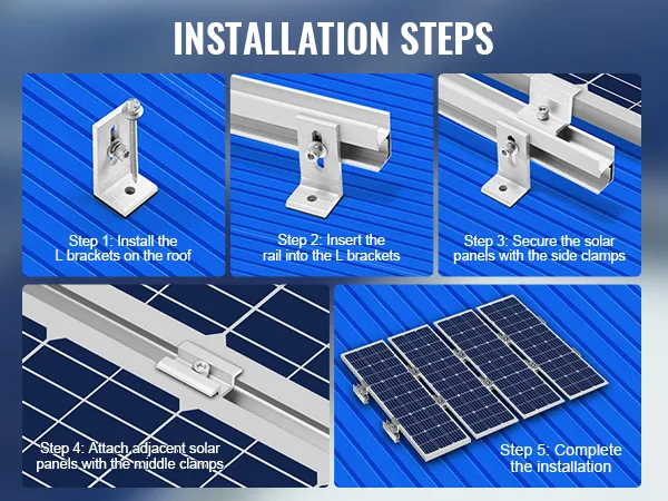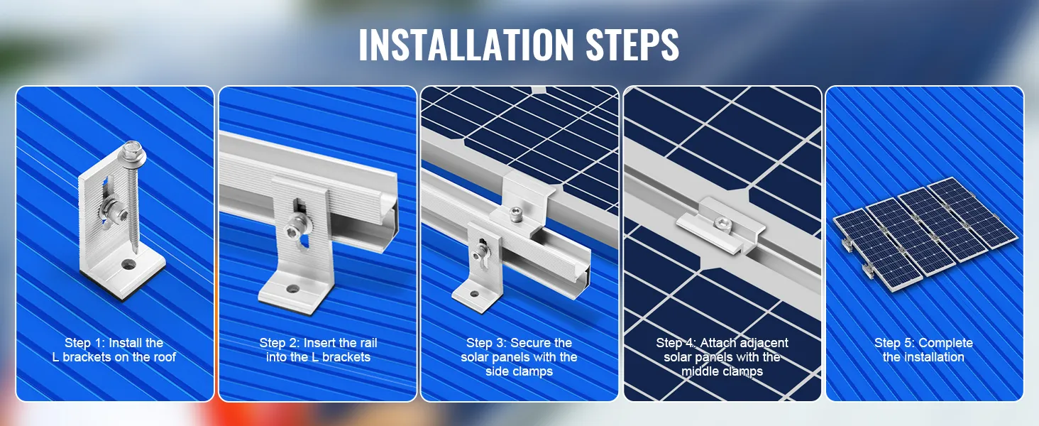 Easy Installation: This solar panel mounting kit comes with 10 guide rails (4-inch), 4 end clamps, 6 mild clamps, a set of accessories and detailed instruction manual, ensuring a quick installation. Users can easily set it up and enjoy stable, reliable support for solar power system.