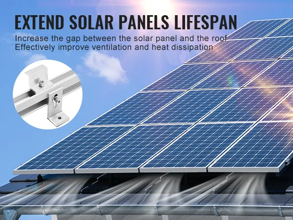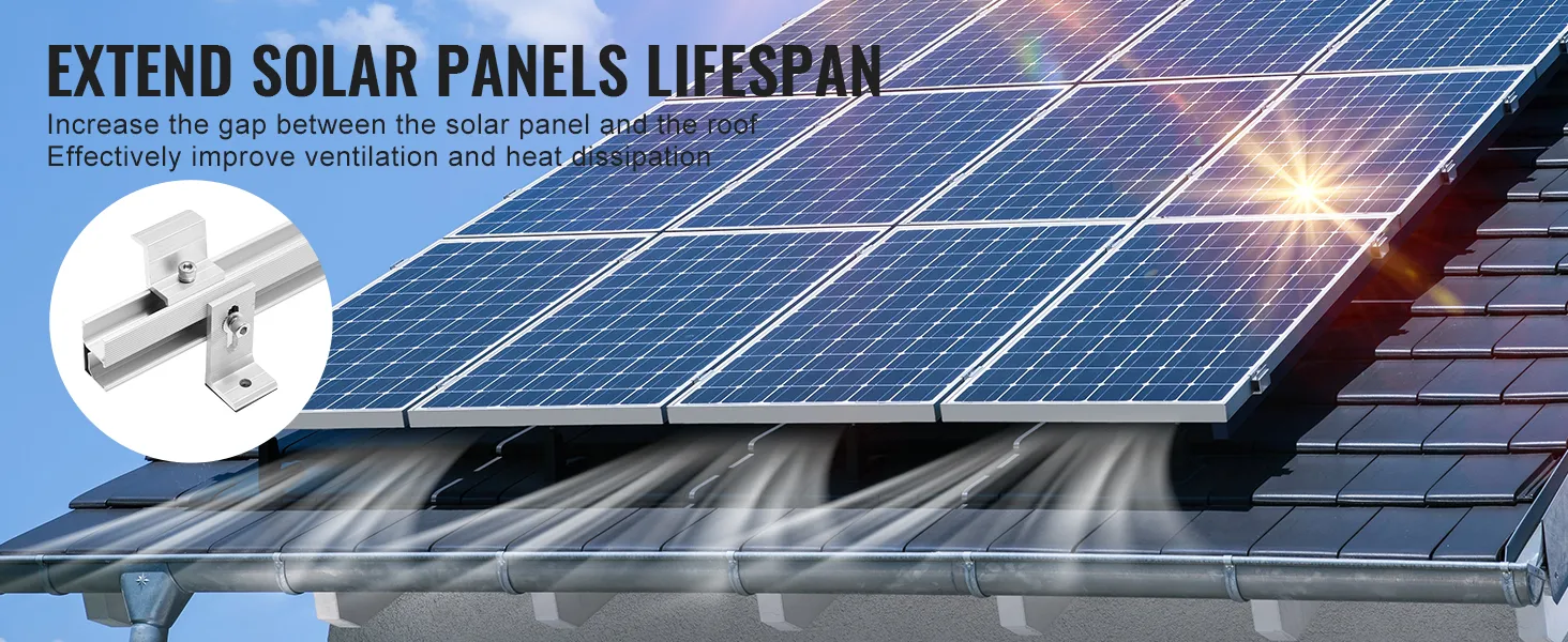Why choose VEVOR solar panel mounting bracket? By increasing the gap between the solar panel and the roof, it effectively improves ventilation and heat dissipation, preventing overheating and extending the lifespan of your solar panels.