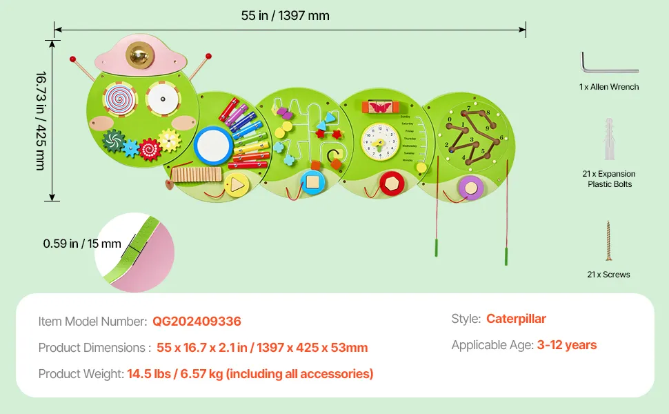 VEVOR Caterpillar Activity Wall Busy Board Panels, 12 Activities, Montessori Sensory Wall Toy for Kids 3-12 Years, Montessori Learning Activity Center, Ideal for Toddler Playroom Nursery Classroom VEVOR Caterpillar Activity Wall Busy Board Panels, 12 Activities, Montessori Sensory Wall Toy for Kids 3-12 Years, Montessori Learning Activity Center, Ideal for Toddler Playroom Nursery Classroom