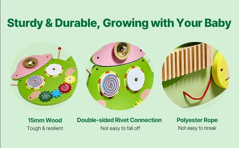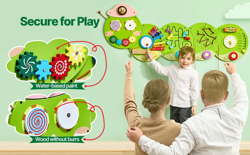 Built to last! With international security certification, this wall mounted busy board is sturdy and secure, and creates a green environment for your little one to play in.