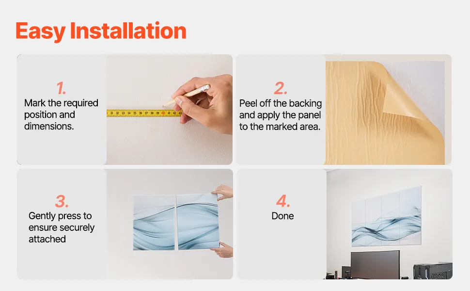 Block out noise with our high-quality wall panels! Easy to apply with a self-adhesive design, no drilling needed. Odor-free, strong sound insulation, and available in multiple colors to match any decor. Perfect for living rooms, offices, studios, and more!