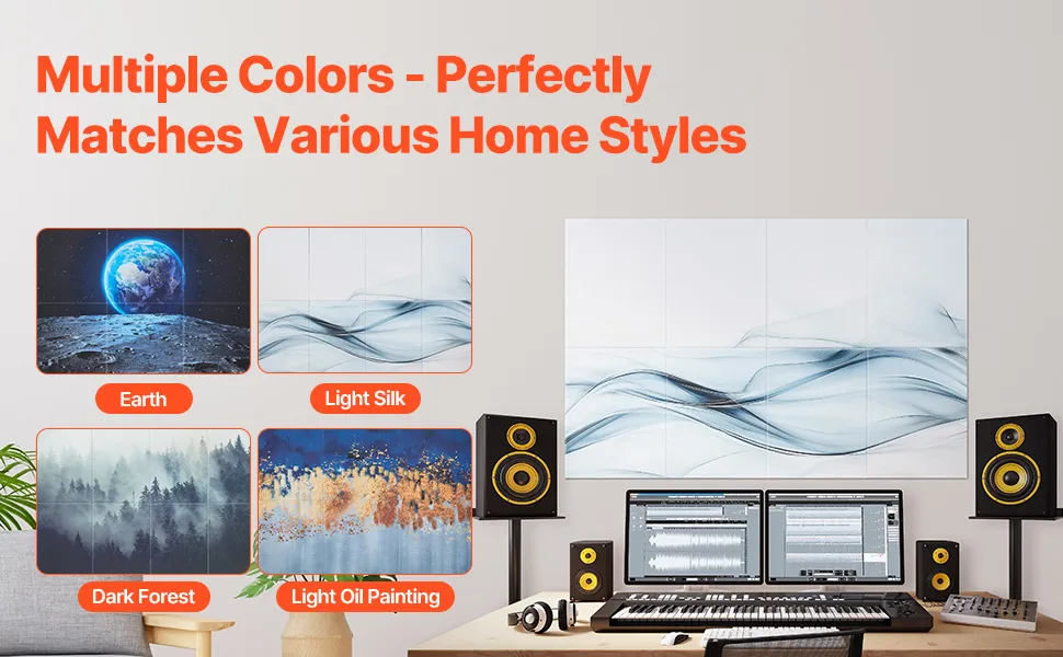 VEVOR 8 Pack Art Acoustic Panels, 47.24 x 23.62 x 0.4 inch Soundproof Wall Tiles, Self Adhesive Decorative Sound Dampening Absorbing Boards for Home, Office, Studio, Gaming Room,Theater,Simplicity VEVOR 8 Pack Art Acoustic Panels, 47.24 x 23.62 x 0.4 inch Soundproof Wall Tiles, Self Adhesive Decorative Sound Dampening Absorbing Boards for Home, Office, Studio, Gaming Room,Theater,Simplicity
