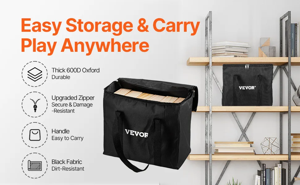 The tumble tower family game comes with a storage bag, making it portable. Play it anytime and anywhere - it's always ready for action!