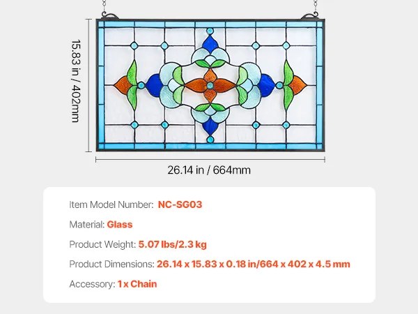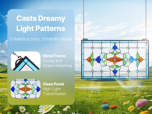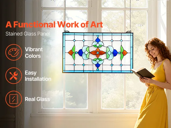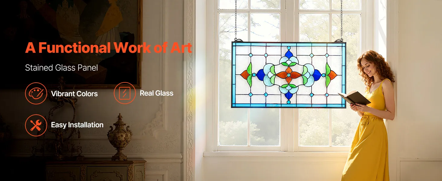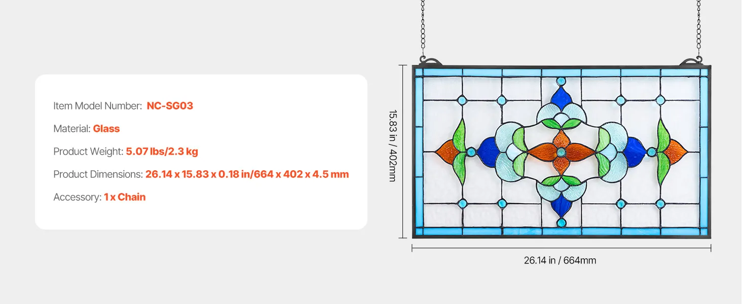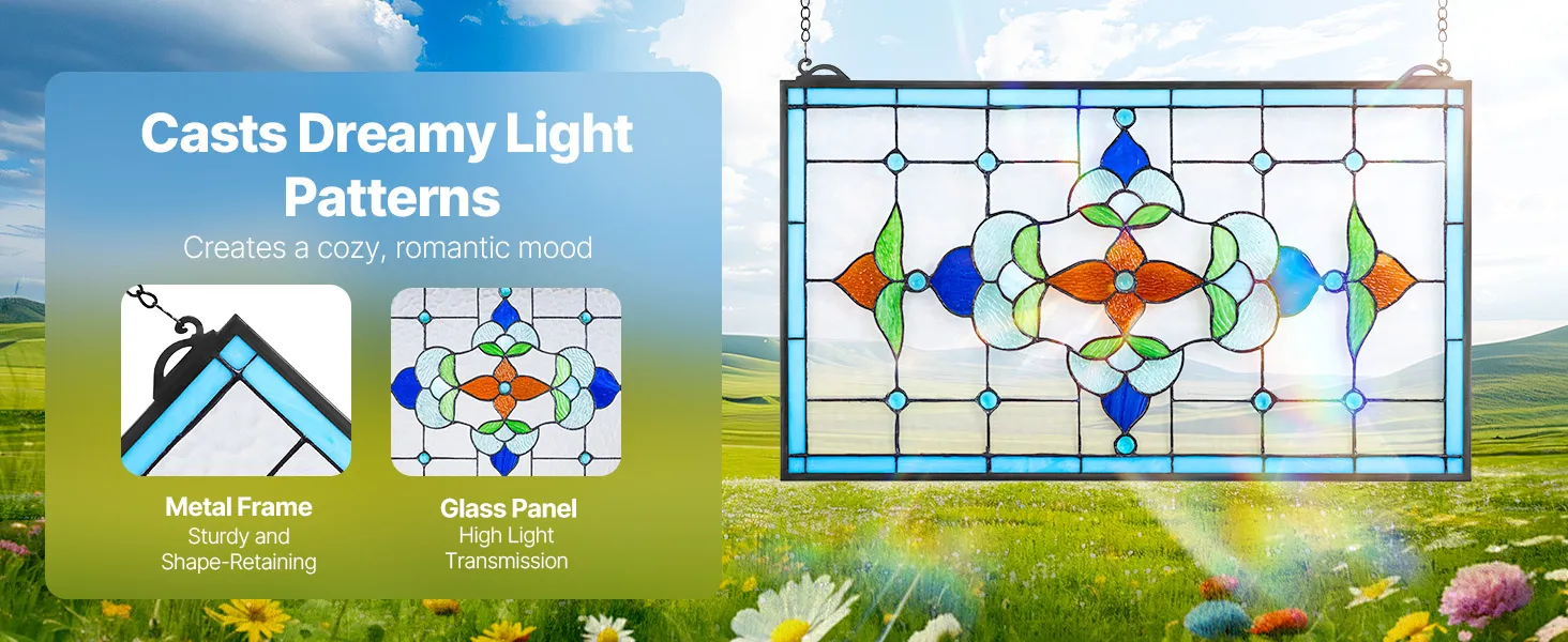 Ready to Hang: Our stained glass panel comes with a pre-attached iron chain and hooks—no extra hardware required. It is easy to hang and install on any wall surface