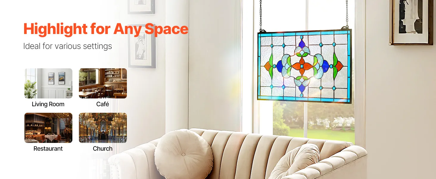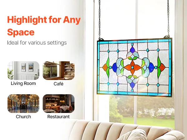 From living rooms and cafés to dining areas and churches, this stain glass window hanging panel suits modern and vintage interiors alike. Hang it to instantly create a stunning focal point and enhance the ambiance of any setting.