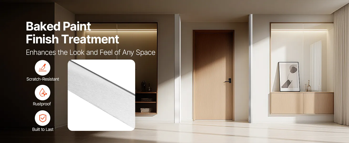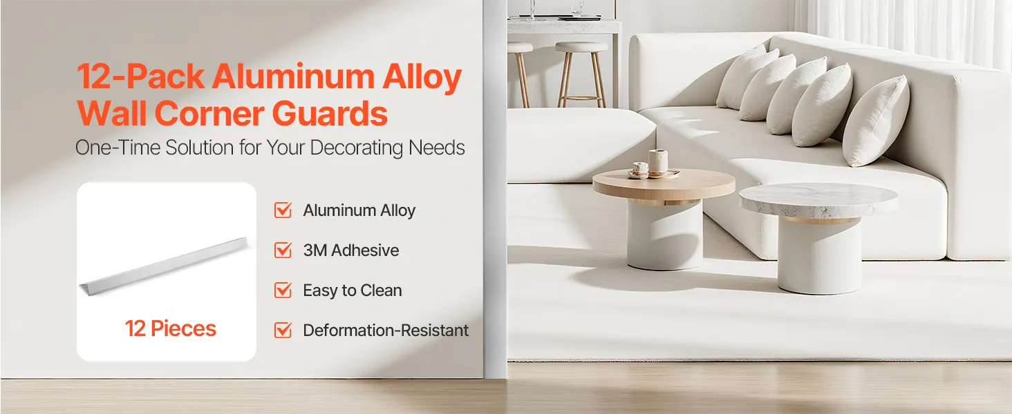 Premium Aluminum Alloy: Made from high-quality aluminum, this wall corner protector is sturdy, corrosion-resistant, easy to clean. Its smooth surface and high strength absorb impacts,ensuring long-lasting protection,combining security and durability